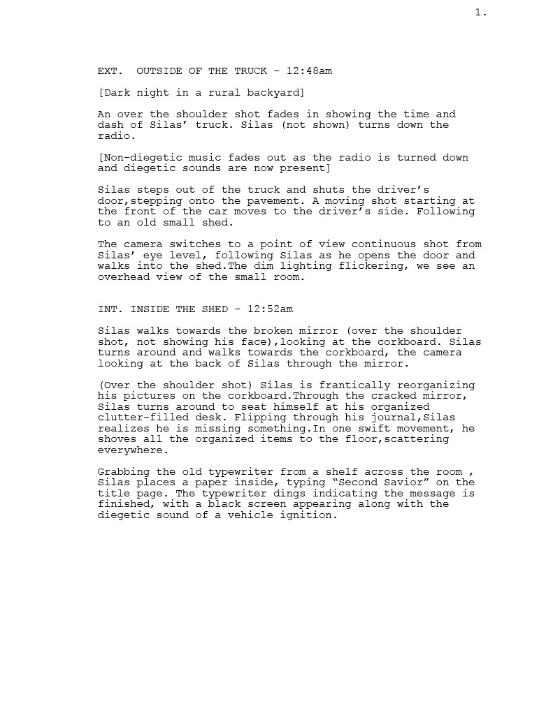 We have made much progress with our film two weeks ago we finished our screenplay with many ideas we could do. As we were making the screen play we were thinking of different camera shots we could do with the different color schemes we could use. As we were nearing the end of the screen play we decided that we would have a horrory/mystery film and have a setting with low lighting in a shed. We were still stuck without a name for the character we spent about 20 min trying to figure out a good name to use for our character. After that me and my group met at my house to set up our film. We had to clean out a shed which took about an hour or two and we had to print pictures and add our props in the shed.
